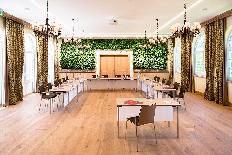Die Tagungsräume im Naturresort Schindelbruch bieten bis zu 30 Personen ausreichend Platz, um den Mindestabstand von 1,5 m einzuhalten und verfügen zudem über mobile Hochleistungs-Luftreinigungsgeräte (Hepa-Filter der Klasse 14). Diese garantieren (Fraunhofer-Institut geprüft) eine Virenfreiheit der Luft von 99,43 Prozent, sodass in den Tagungsräumen keine Maskenpflicht besteht.